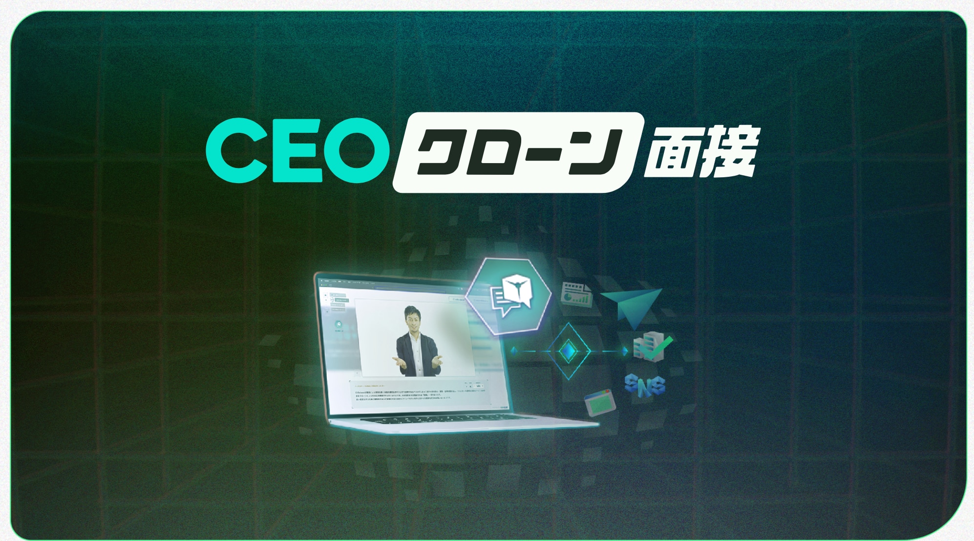24時間365日、AIがクローンとして候補者に対応し、「いつでも会える採用体験」を提供するプラットフォーム「CEOクローン面接」のサービス説明資料です 。