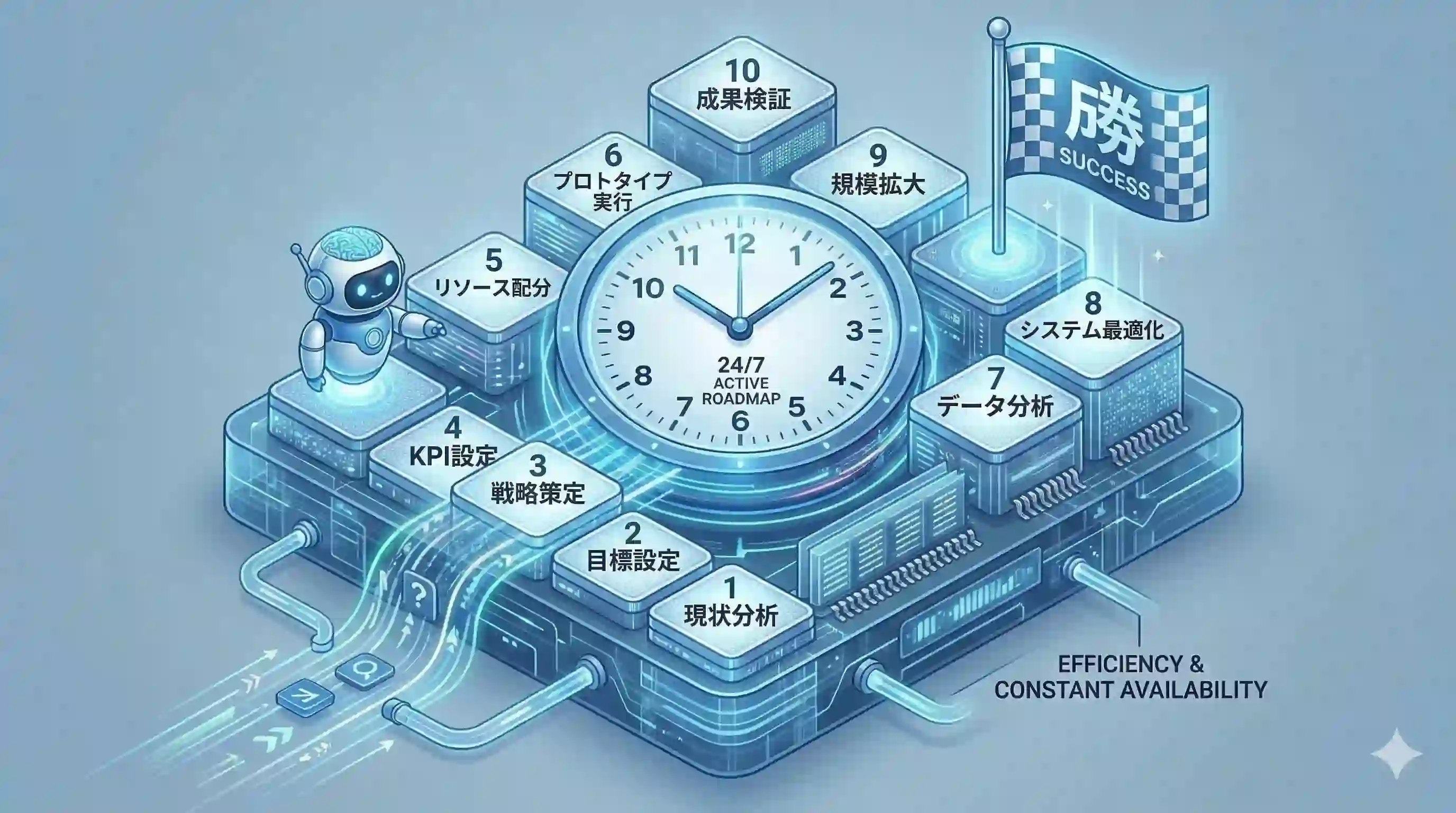 ここでは、チャットボットを「検討〜運用改善」までスムーズに進めるための全体フローを、10段階で整理します。導入はツールを選んで終わりではなく、目的・設計・運用までを一連の流れとして捉えることが重要です。