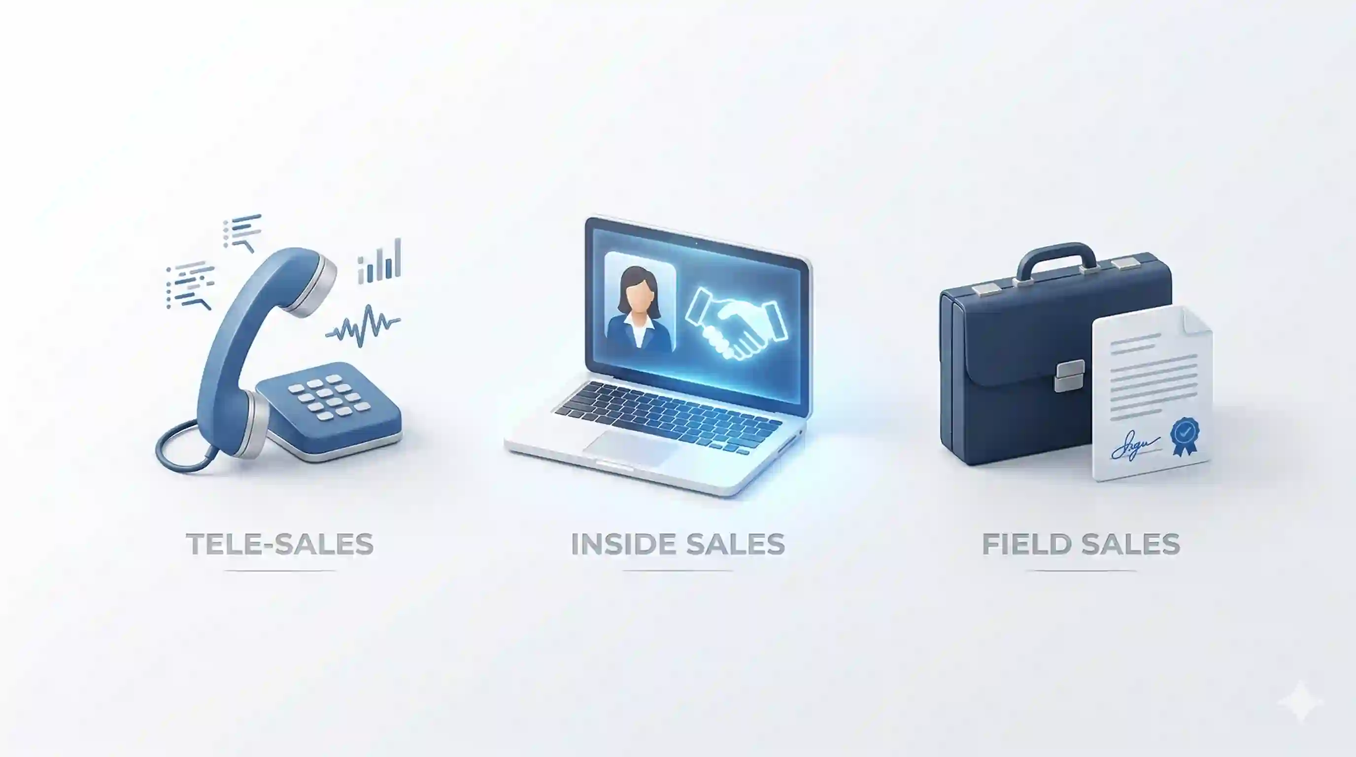 インサイドセールスを正しく理解するためには、従来の営業手法であるフィールドセールスやテレアポとの違いを整理することが重要です。似ているようで役割や目的は大きく異なり、それぞれの特性を理解することで、営業全体の設計も見直しやすくなります。