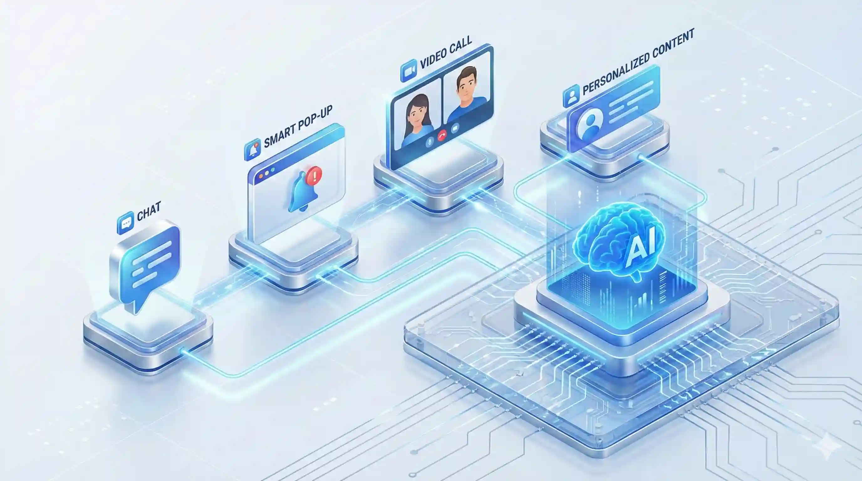 ユーザーの滞在時間、スクロール率、ページ遷移などから「離脱予兆」を検知し、クーポン表示や資料請求の案内、FAQへの誘導などを行うことで、離脱を未然に防ぐことが可能です。
